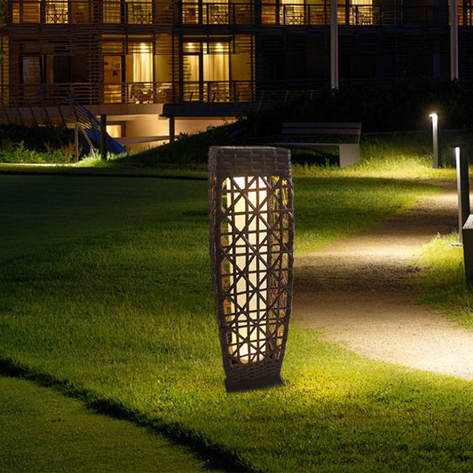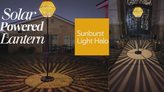 Outdoor 19" Solar Powered Lantern With Rattan Weaving-Floor Lamp