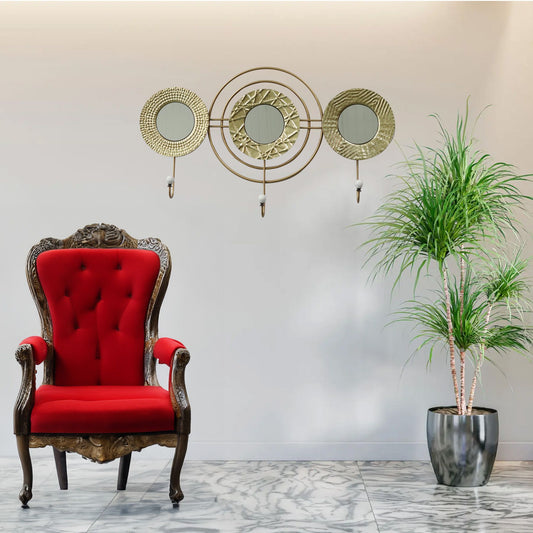 Gold Mirrored Wall Hook - Elegant Entryway Organizer With 3 Hooks