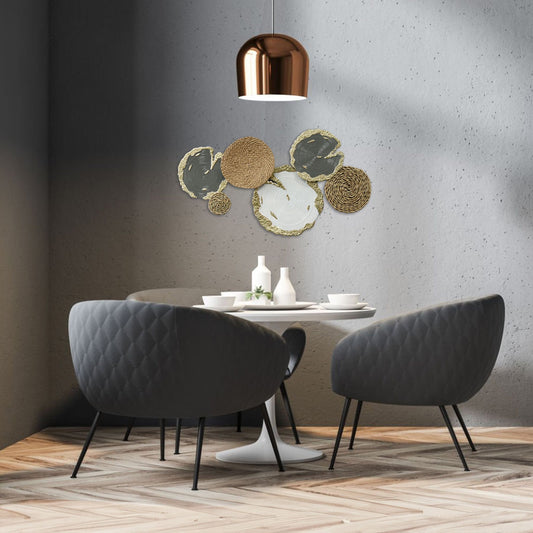 Mixed Material Wall Art - Modern Interconnected Ring Design for Contemporary Decor