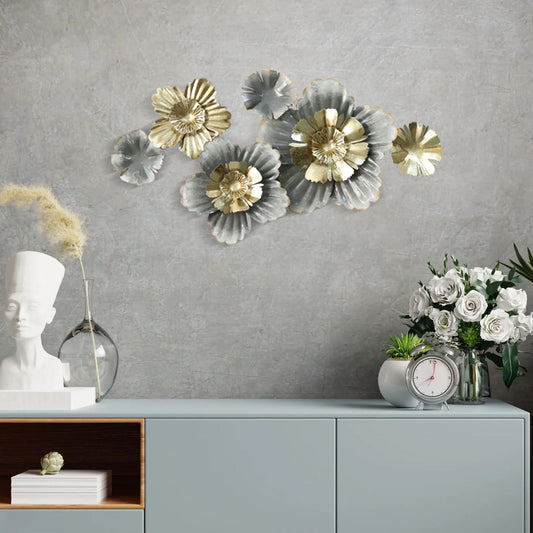 Oversized Floral Bloom Wall Art - Nature-Inspired Metal Decor With Gold Accents