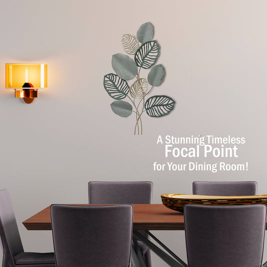 Vertical Green and White Leaf Wall Art - 3D Metal Foliage Decor