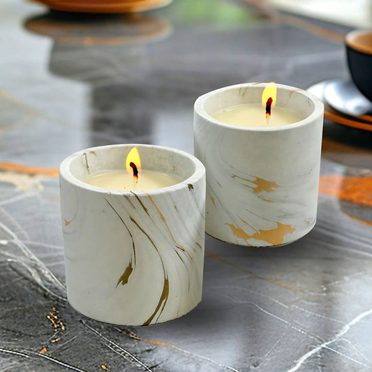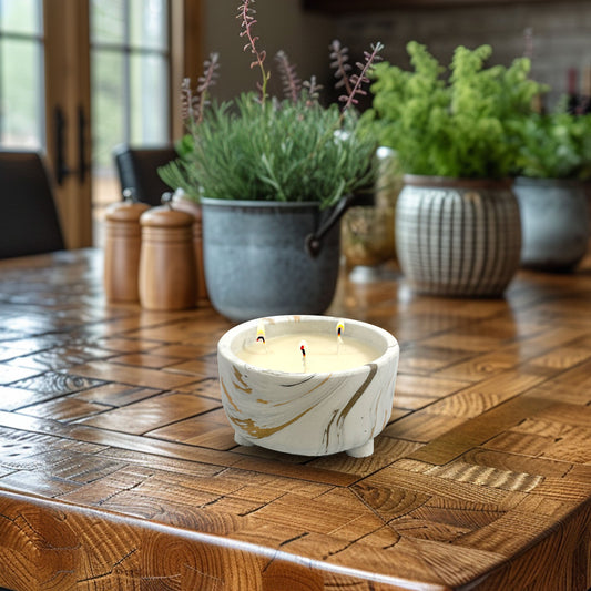 White and Gold Marbled Ceramic Candle Bowl - 12 Oz Floral Scented Candle for Elegant Home Decor And