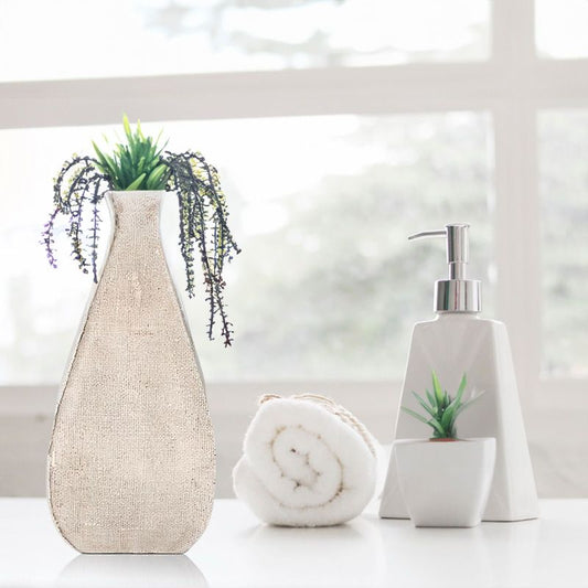 White Textured Polyresin Vase | Polyresin Modern Vase | Textured Vase | Design Vase | Home Decor