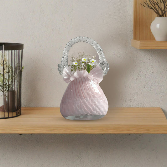 Crystal Bloom Scalloped Glass Basket - Elegant Floral Display Vase