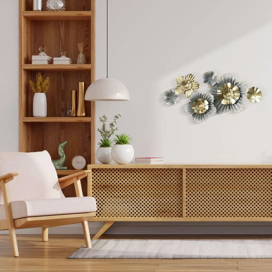 Oversized Floral Bloom Wall Art - Nature-Inspired Metal Decor With Gold Accents