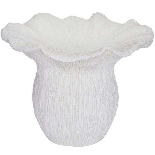 Needley White Striped Textured Polyresin Vase - 15" Tall Modern Decorative Vase for Dried Flowers Or