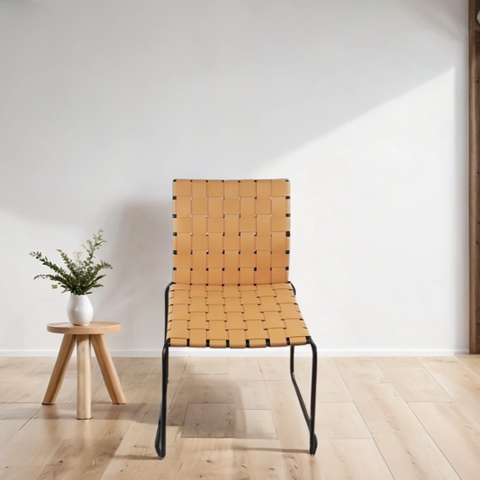 Set of 4 Manon Checker Weave Recycled Leather Dining Chairs With Black Frame