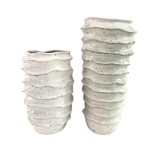 Set of Two Tall Grooved Speckled Vases | Textured Vase | Ceramic Vase | Decorative Vase |
