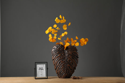 Brown Leaf Polyresin Vase | Holiday Gift |Contemporary Vessel | Modern Brown Polyresin Vase | Rustic