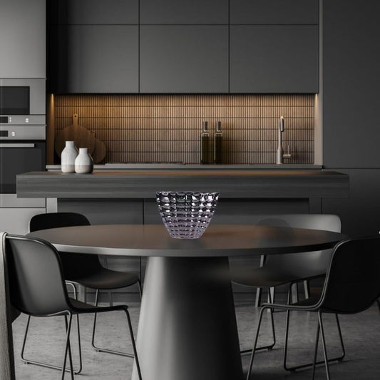 Titanium Silver Ceramic Centerpiece Bowl - Modern Square-Patterned Decor for Tables and Shelves
