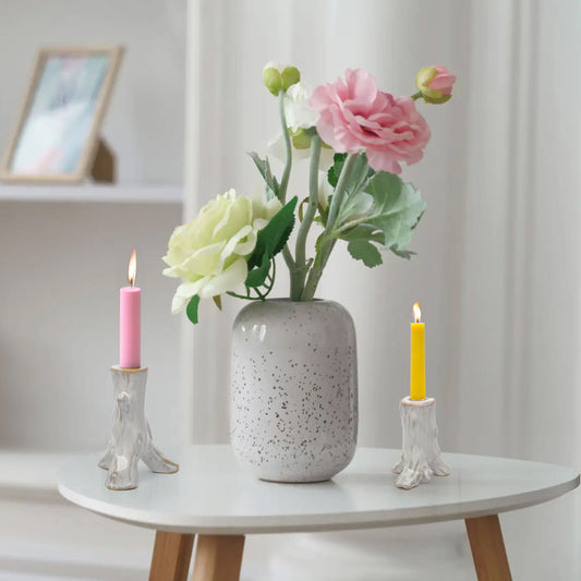 Set of 2 Botanical Candlesticks - Gray Ceramic Candle Holders for Rustic and Elegant Home Decor
