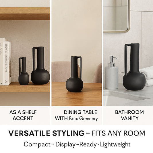 Set of 2 Matte Black Ceramic Water Jugs - Decorative Vase Duo