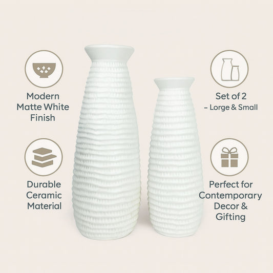 Set of 2 Matte White Ceramic Cylinder Vases - Minimalist Modern Design | Aria Home