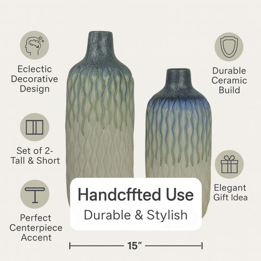 Set of 2 Decorative Ombre Ceramic Urns - Textured Design | Aria Home