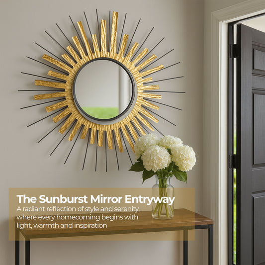 Sunburst Mirrored Wall Art - Metallic Decorative Centerpiece
