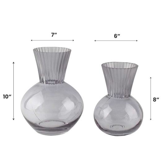 Fleurine Colored Glass Collection, Set of 2 Fluted Blooming Flower Table Vases