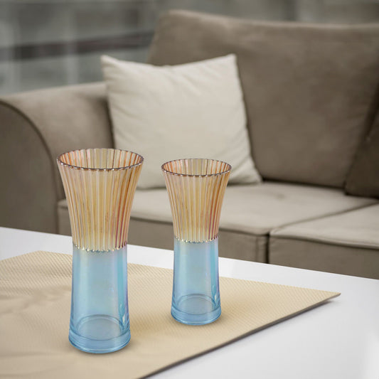 Fleurine Colored Glass Collection, Set of 2 Two-Tone Angular Table Vases