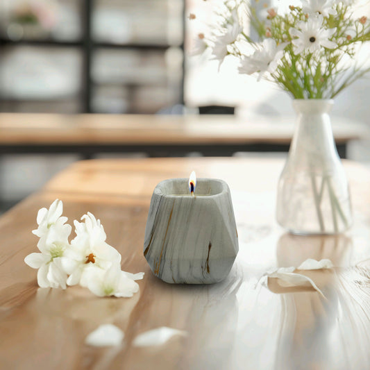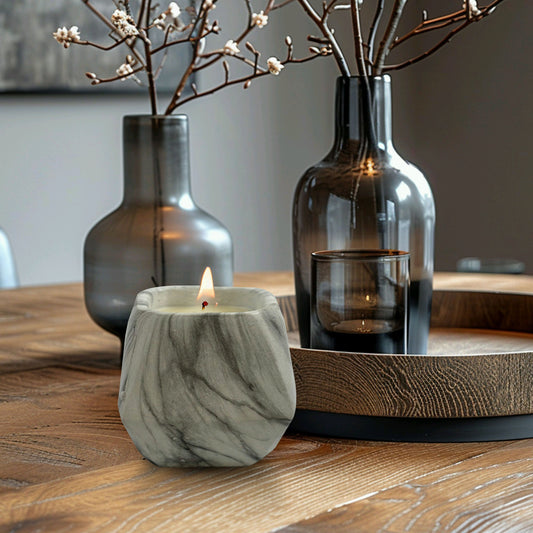 Grey Marbled Prism Bowl Candle, 10 Oz
