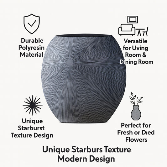 Sunburst Grey Polyresin Vase - Modern Decorative Vase for Dried Flowers and Faux Arrangements | 15"