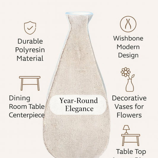 Wishbone White Textured Vase | Modern Design | Centerpiece | Holiday Gift | Interior Decor | Europea